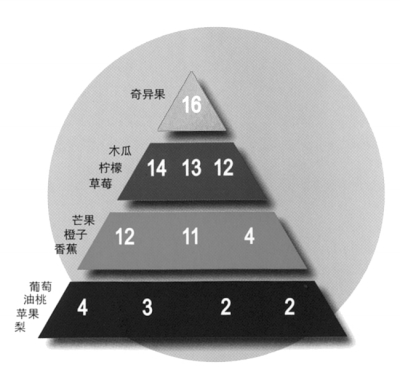 常见水果每百克营养密度排名 由卫生部、中国记协主办,中国营养学会和佳沛中国支持的“中国健康知识传播激励计划――果蔬营养与膳食平衡知识交流会”日前举行,各方专家共同呼吁:每天摄入足量的水果和蔬菜,保持膳食平衡,预防慢性疾病。 卫生部国家营养标准专业委员会主任委员杨晓光发布了“果蔬营养与膳食平衡五点提示”: 一,天天吃水果,顿顿有蔬菜 良好的膳食平衡习惯使人受益终生,而新鲜蔬果是平衡膳食的重要组成部分。多吃果蔬能促进代谢,减少能量摄入,帮助塑身。 二,果蔬2+3,抗病又防癌 每天摄取至少200克水果与300克蔬菜,可以有效提高身体免疫力,达到抗病防癌的效果。 三,果蔬变彩虹,健康添色彩 不同颜色的蔬果能提供不同的营养价值,认识蔬果的色彩特点,摄取不同颜色的蔬果。绿色水果富含叶黄素,橘黄色水果含β-胡萝卜素与维生素C,深绿色蔬菜富含叶酸,红色水果含茄红素,白色水果含硫化物等。 四,果蔬新鲜吃,营养更加分 直接从新鲜水果摄入的营养更易于人体吸收。因为维生素C遇热分解,所以新鲜水果更易于补充维生素C。水果中的维生素C能提高免疫力,预防疾病和抗氧化、衰老等。果蔬中的膳食纤维能够预防便秘、血脂异常、糖尿病,有益于肠道健康。 五,膳食平衡,健康一生 将果蔬作为孩子的零食,从小养成喜欢吃蔬菜水果的健康膳食习惯将使其一生受益。