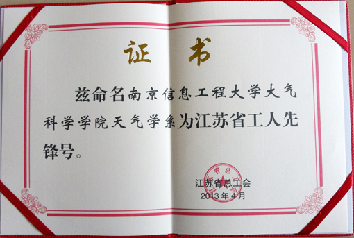 近日,从江苏省总工会获悉,我校语言文化学院被评为省总工会“模范职工小家”,大气科学学院天气学系被评为省总工会“工人先锋号”。