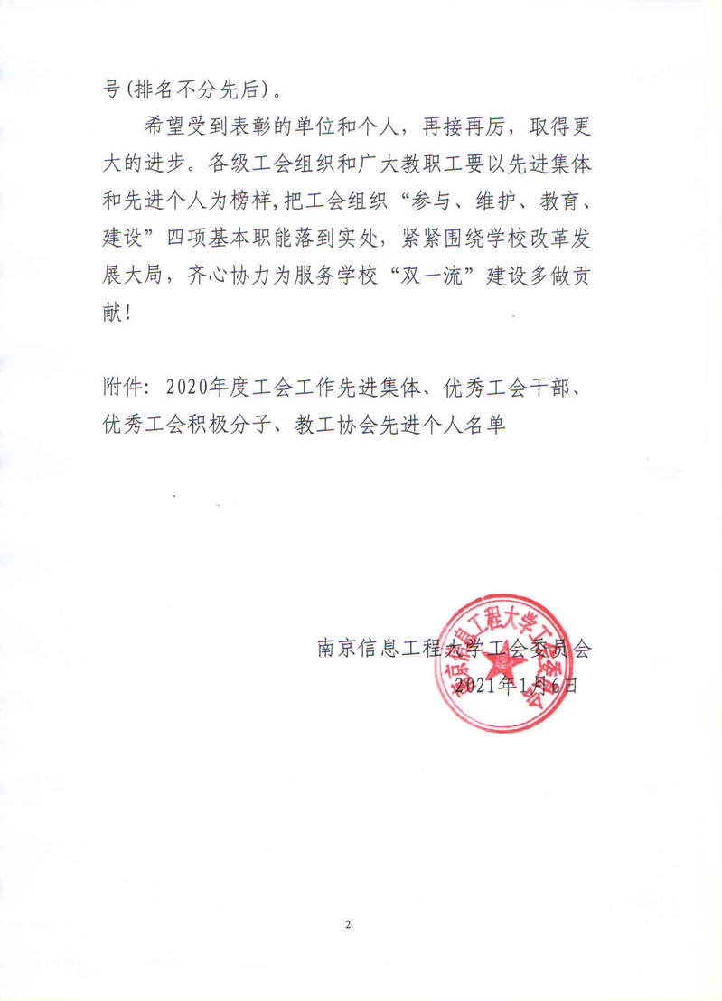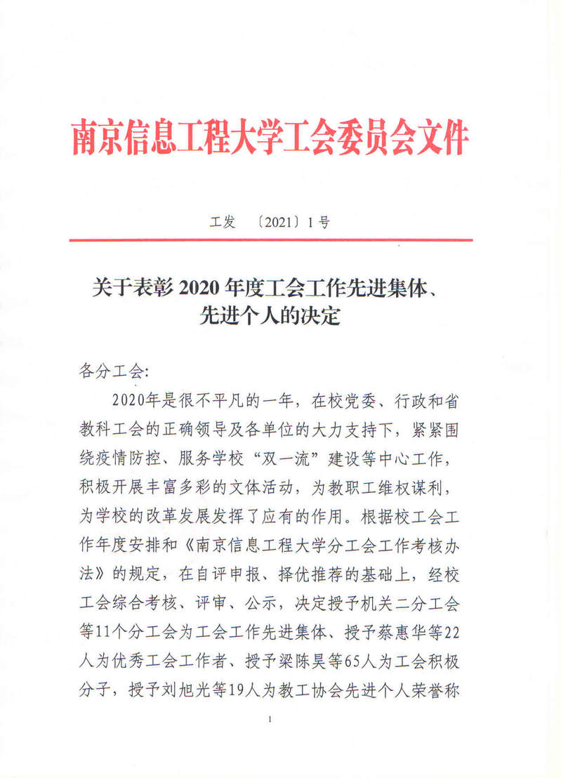 关于表彰2020年度工会工作先进集体、先进个人的决定 (工发〔2021〕1号)