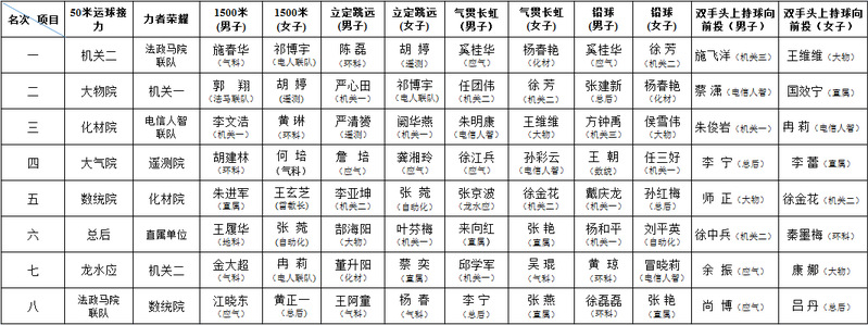 经过激烈的角逐,7个项目前八名的获得者(单位)如下: