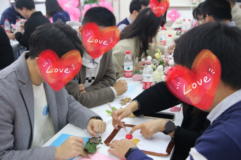 本次联谊活动在破冰游戏中缓缓打开青年男女的心扉。之后在我爱猜歌名、记忆大比拼、恋恋金字塔、气球不落地、DIY秋叶等精心设计的项目中,青年男女之间的互动交流由浅入深,彼此之间从陌生到熟悉,在最后的“心动你来问”环节,还有机会通过提问深入了解自己的心仪对象。精彩纷呈的互动环节化解了初次见面的尴尬与矜持,年轻人所特有的青春风采尽情展现,现场氛围轻松愉悦、情意融融,整个会场充满了欢声笑语,洋溢着一片浪漫甜蜜的气息。在令人期待的“互赠信物”环节,有5对男女嘉宾现场大胆表白并牵手成功,其余不少青年男女彼此有意,与自己心仪的TA互相交换了联系方式,方便今后的深入交流。