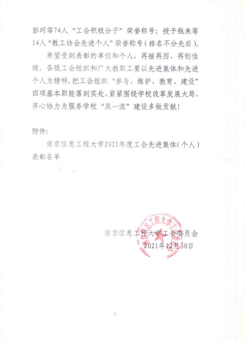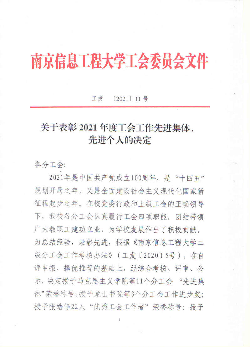 关于表彰2021年度工会工作先进集体、先进个人的决定 工发〔2021〕11号