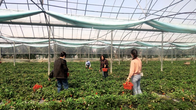 中午12点半左右,参加此次活动的教职工们从校内结队出发,自驾到盘城街道草莓采摘园。一踏入草莓大棚,放眼望去,一垄垄翠绿的植株之间,色泽艳丽的草莓在绿叶中若隐若现,绿红交织,相映成辉,如此景象使大家兴奋不已。大家一边采摘一边交流,动手的快乐和话语间的喜悦,让种植棚中笑声不断,气氛热烈。经过半个小时的采摘,大家手中的果篮也都已装满,每个人带着自己的劳动成果,高兴地走出草莓棚,结束了今天的采摘之旅。