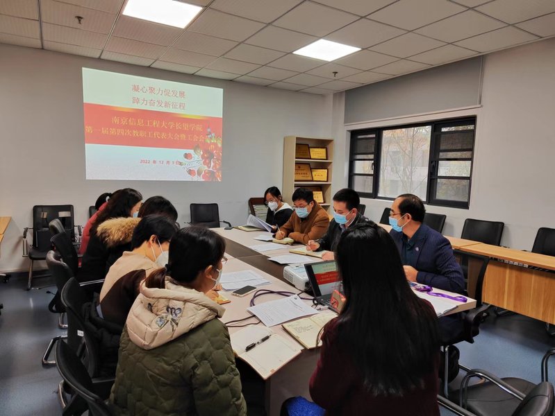 2022年12月9日上午9点,长望学院召开第一届四次教职工大会暨工会会员大会,学院全体教职工参加此次会议,会议由学院分工会主席、党委副书记、副院长王康宏主持。