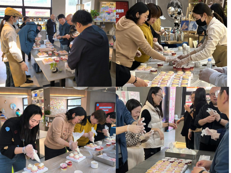 教职工们根据自己的喜好进行纸杯蛋糕的搭配,有的会员以奶油进行打底,并在上面附上草莓加以点缀;有的会员则用糖果和巧克力饼干附于蛋糕顶端,也同样别出心裁。活动开展约40分钟,教职工们将自己精心制作的蛋糕拍照留影,并在烘焙师的帮助下一一装饰打包,现场气氛轻松活泼,活动十分有意义。活动结束后,大家依依惜别,均表示了对活动开展的主题、形式等内容的满意与肯定。未来,分工会还会积极开展各类集体活动,希望让更多的教职工感受到学校的温暖。