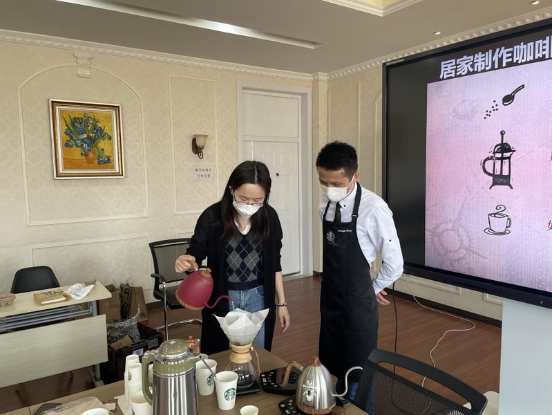 活动中,咖啡师首先对大家进行了咖啡的基本知识培训;互动环节中,咖啡师进行了咖啡制作器皿展示以及手冲咖啡体验;现场磨、闻、品,尝、做环环紧扣,气氛热烈。女教职工表示,本次活动新颖且有趣,丰富了大家对居家制作咖啡步骤的了解,学习了如何选豆、如何烘豆等基本知识,加深了大家对咖啡种类、制作器皿及程序的认识。