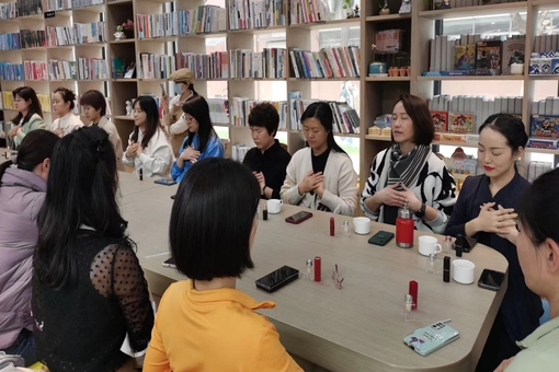 莺飞草长,春暖花香,3月8日上午,商学院分工会联合教职工瑜伽协会在中苑1960街区C栋誌四季书店组织女老师们参加“芳疗冥想,珍爱自我”自制精油唇膏活动。活动由分工会文艺委员杨文娟主持,专业芳疗师带领教职工们进行唇膏DIY,自己动手,送自己一份芳香的礼物。制作现场洋溢着阵阵欢笑,商学院女教工俨然“变身”成化学试剂师。等待唇膏脱模的过程中,芳疗导师带领所有教职工们进行了芳香疗愈冥想,帮助大家调整身心,释放压力;校教职工瑜伽队为大家带来了精彩的舞韵瑜伽演出,我院三位会员参加演出,展现了商学院女教工的风采。