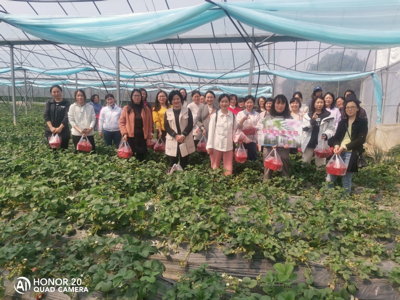 阳春三月,万物萌生。为庆祝第113个“三八”国际妇女节,丰富我院女教职工文化生活,加强女教职工精神文明建设,3月15日中午,应气院分工会组织女教职工到盘城草莓园进行采摘活动。