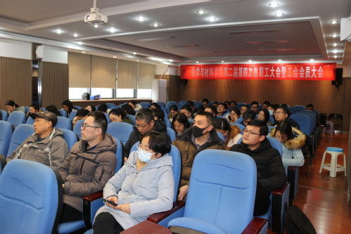 1月3日下午,化学与材料学院在逸夫楼S427会议室召开第二届第四次教职工大会暨工会会员大会,学院党委书记杨春艳、副院长(主持工作)耿东生、副书记兼副院长、分工会主席孙加兴、副院长李敬发和全体教师参加,会议由杨春艳主持。