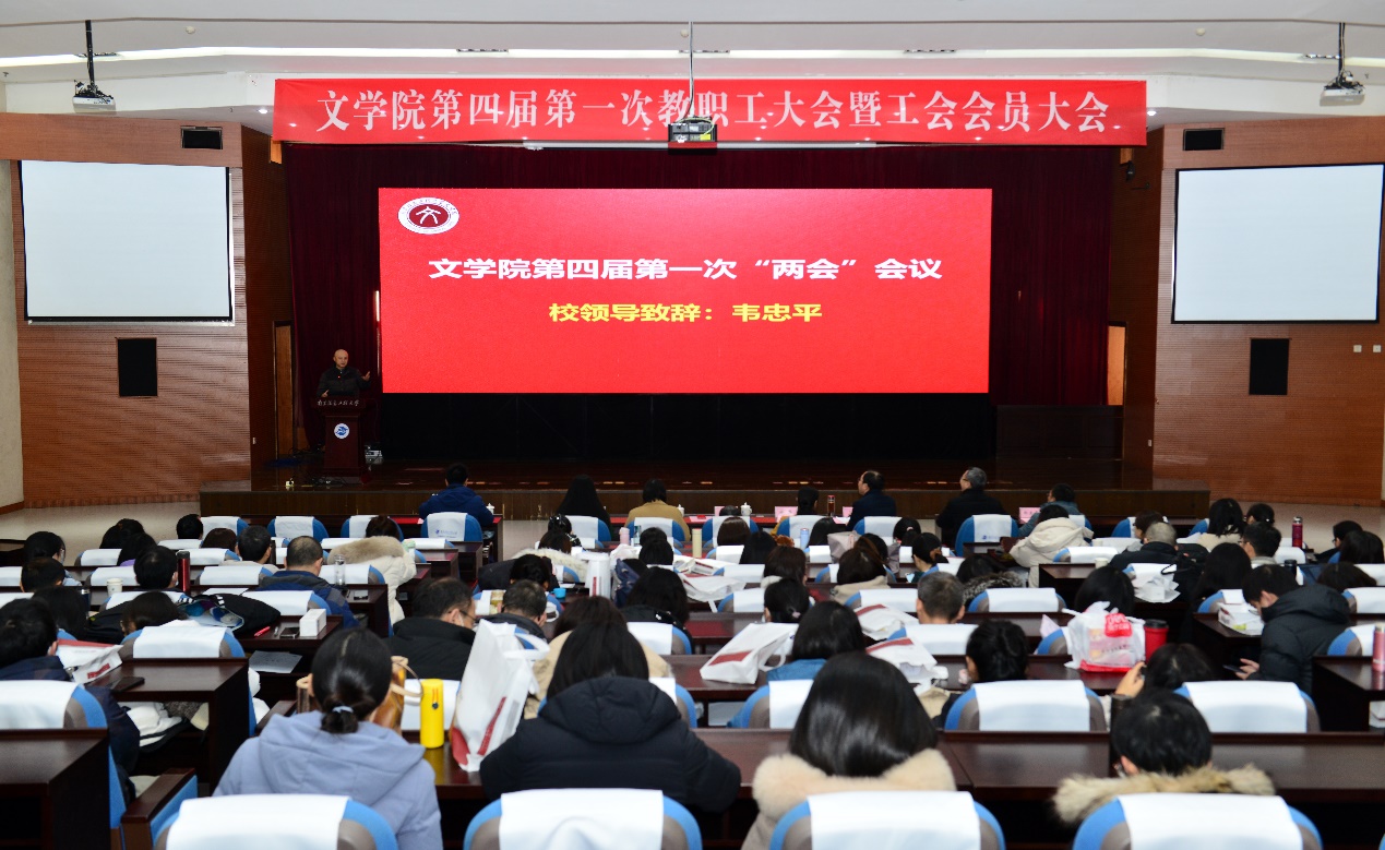 1月5日,文学院第四届第一次教职工大会暨工会会员大会在气象楼一楼报告厅顺利召开,校党委常委、副校长韦忠平,校工会主席徐萍出席会议,学院全体领导班子和教职员工参加会议。会议由学院党委副书记(主持工作)郭雨主持。