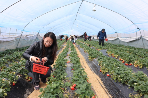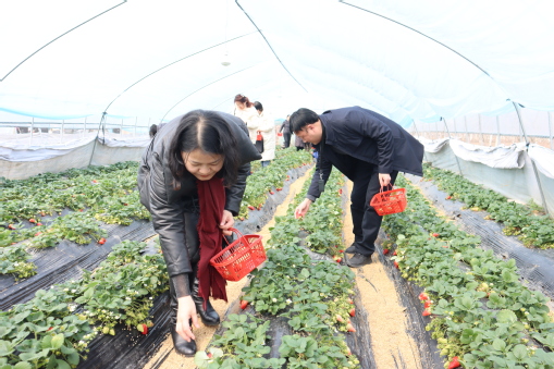春风送暖,万物复苏, 3月6日,值三八节来临之际,化学与材料学院分工会组织开展采摘草莓,春季踏青活动。化材院分工会主席孙加兴、学院领导和教职工参加。天气晴朗,绿意盎然,老师们欢聚草莓园。一颗颗红色的草莓鲜艳欲滴,圆润可爱。老师们笑意盈盈,精心挑选,为采摘到漂亮的草莓而欢笑。会员们还坐着观光车,游览了生态园春天的景色,身心得到了放松。