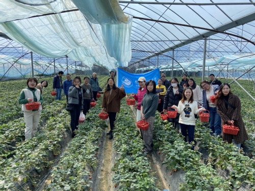 人间最美三月天,春花烂漫展新颜,为了让每位女职工度过一个温馨愉快的节日,3月8日下午1点,法政学院分工会组织安排,分工会主席张昳丽带领全院女教职工和部分男教职工代表前往盘城草莓采摘基地进行草莓采摘活动。