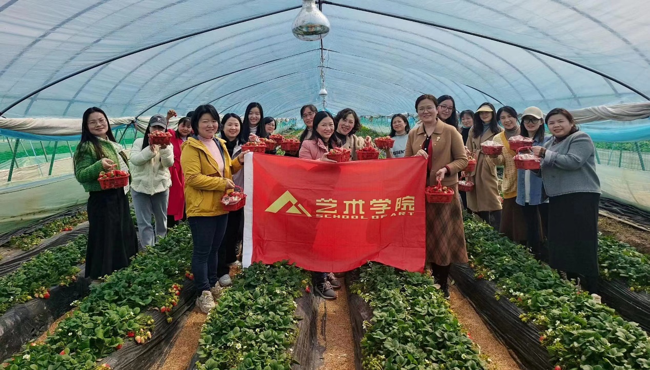丰富女教职工业余文化生活,倡导健康生活方式,3月13日下午,艺术学院分工会组织全院近20名女教职工共赴美丽乡村开展艺术采风和草莓采摘活动。艺术学院院长张可明、党委副书记詹筱茹和院工会副主席车焱森与女教职工们共同采摘享受春日收获的喜悦。