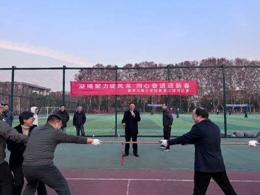 为迎接新年的到来,丰富广大教职工精神文化生活,提高团队合作能力和坚韧不拔的精神,数学与统计学院分工会于2025年1月2日组织开展了“凝绳聚力绽风采,同心奋进迎新春”拔河比赛。