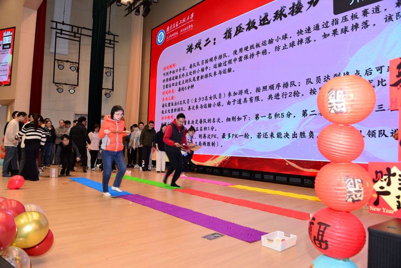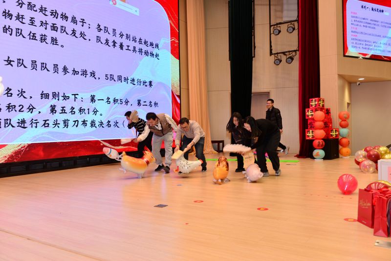 随着主持人一段亲切的暖场,联欢会拉开序幕。在主持人热情洋溢的报幕下,院分工会精心设计的“抢零食大作战”“趣味赶动物”“指压板运球接力”“公鸡下蛋”等四个趣味游戏悉数登场。参与游戏的老师们各显神通,以技能和激情,感染了现场的每一位教职工。游戏间隙还进行了抽奖环节,大家踊跃互动,营造了快乐祥和的迎新氛围。