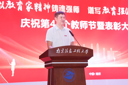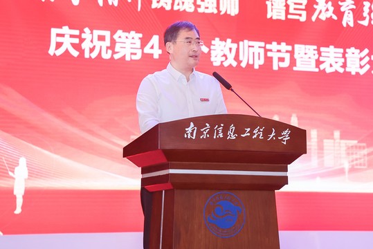 校党委书记尚洪波在大会致辞,向全校教职员工致以节日的问候,向长期以来为南信大建设和发展作出贡献的老教师、老同志们致以崇高的敬意,向2024至2025学年获得各类荣誉的优秀集体和个人表示热烈祝贺,同时也向入职南信大的新教职员工表示诚挚的欢迎。尚洪波强调,要贯彻好落实好习近平总书记关于教育家精神的重要论述,深切体悟党和人民对教师队伍的殷切期望与重托。