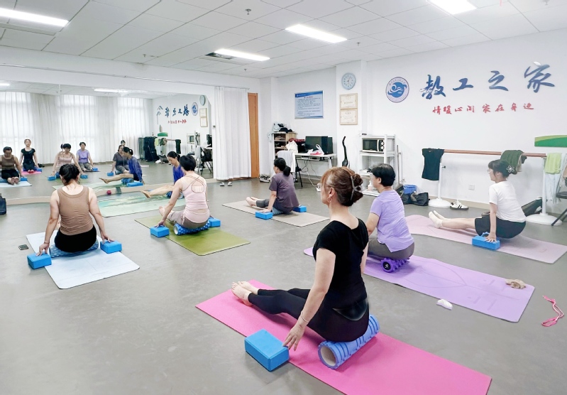 在教练的带领下,老师们认真地进行着练习,每一个动作都与音乐完美契合,每一次呼吸都伴随着旋律起伏。一位参与的老师说:“这不仅仅是运动,更像是和自己内心的一次深度对话”,老师们纷纷表示运动完非常舒服,既能出汗放松身体,又能感受音乐的愉悦调整心情,今后,要继续坚持这项运动,以更饱满的热情投入到教育教学工作中去。