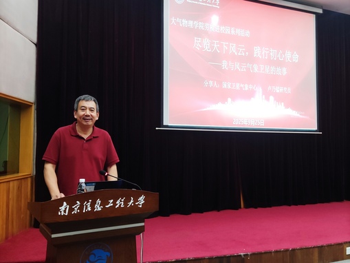 卢研究员以“尽览天下风云,践行初心使命”为主题,回顾了我国风云卫星从起步探索到形成“极轨+静止”观测体系、服务全球30余个国家的发展历程,介绍了温湿探测仪、静止轨道微波探测卫星等技术突破案例,并寄语学子以好奇心驱动科研,注重团队协作与民生服务。
