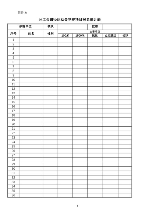 3.各分工会根据名额分配表(见附件2)组织教职工报名参赛,表中所列分配名额为报名人数最高限额。各分工会须报领队1 人,教练(联络员) 1 人,领队必须由分工会主席或副主席担任,文体委员可作教练或联系人。