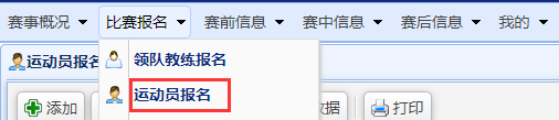 (4)报运动员:(注意至少先报一名领队或教练方可报运动员),选择组别,输入姓名,勾选项目,点击“添加”,完成一个人的报名。报名结束无需保存提交,直接退出即可。