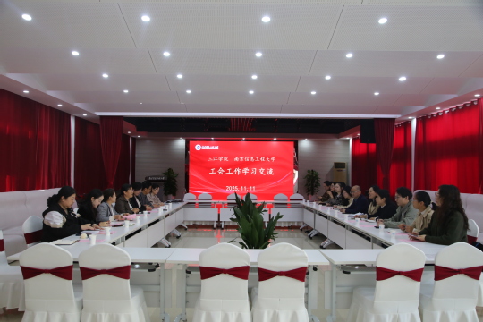 11月11日,三江学院工会主席杨业琴一行来校调研工会工作。校工会主席徐萍主持座谈会,电信院分工会副主席孙彩云、商学院分工会副主席杨文娟及工会相关工作人员参会。