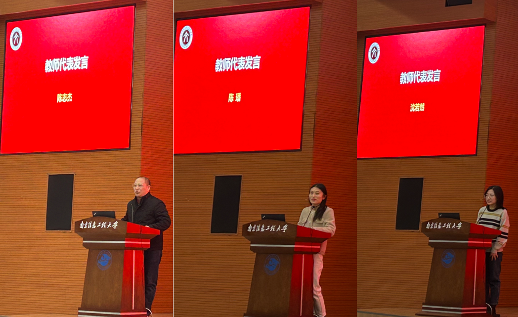在教师代表发言环节,三位老师依次登台。他们结合自身的教学科研经历,分享了宝贵的经验与感悟,表达了对学院发展的坚定信心与美好祝愿。他们的发言情真意切,引发了在场教职工的强烈共鸣。