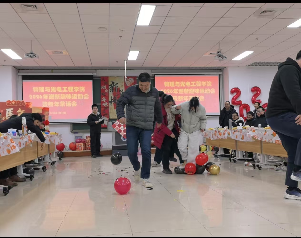 2026年1月12日下午,物理与光电工程学院在藕舫楼205室隆重举办“迎新年茶话会暨趣味运动会”,以温馨而热烈的氛围正式拉开新一年序幕。学院领导班子与全体教职工齐聚一堂,共叙发展情谊,加强互动交流。