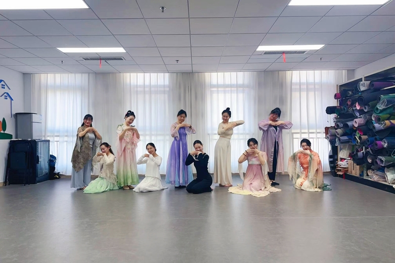 活动伊始,老师们初次接触汉唐舞蹈的韵律与身段,动作略显生疏不协调。但在夏老师耐心细致的讲解与示范下,大家全神贯注、认真揣摩,跟着节拍反复练习。经过一个多小时的沉浸式学习,老师们逐渐找准节奏,举手投足间颇有汉唐舞的典雅韵味,学得有模有样。