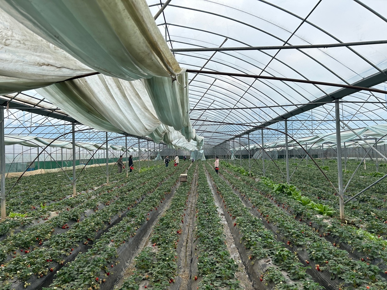 顺利下山后,大家前往周边草莓园体验采摘乐趣。温室大棚内绿意葱茏,鲜红饱满的草莓缀满藤蔓,果香清甜诱人。女教职工们手提果篮,穿梭于田垄之间,精心挑选、采摘新鲜草莓,亲手感受田园劳作的快乐。大家边摘边聊,分享采摘喜悦,定格温馨瞬间,现场氛围轻松愉悦、暖意融融。