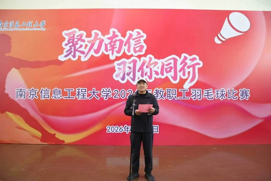 4月26日,我校2026年“聚力南信 羽你同行”教职工羽毛球比赛在教工活动中心一楼主馆火热开赛。校工会主席徐萍主持开幕式,校党委副书记王培君出席开幕式并致辞。
